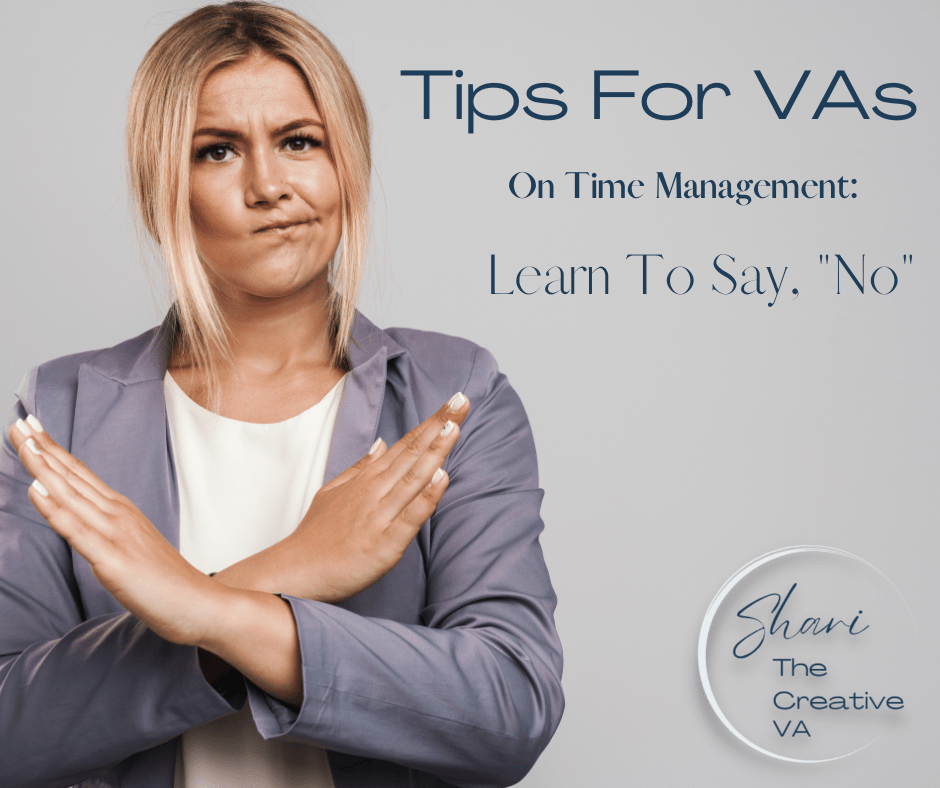 By using some of the above tools I’ve linked to, any virtual assistant should be able to tell, at a glance, what their schedule looks like and whether they can reasonably expect to have the time to add anymore tasks. From there, it’s a matter of getting comfortable saying, “no.” This may be a challenge for many; we got into this field because we love to help others, after all! But in time, the more you use the word, the more comfortable you will be in saying it.
