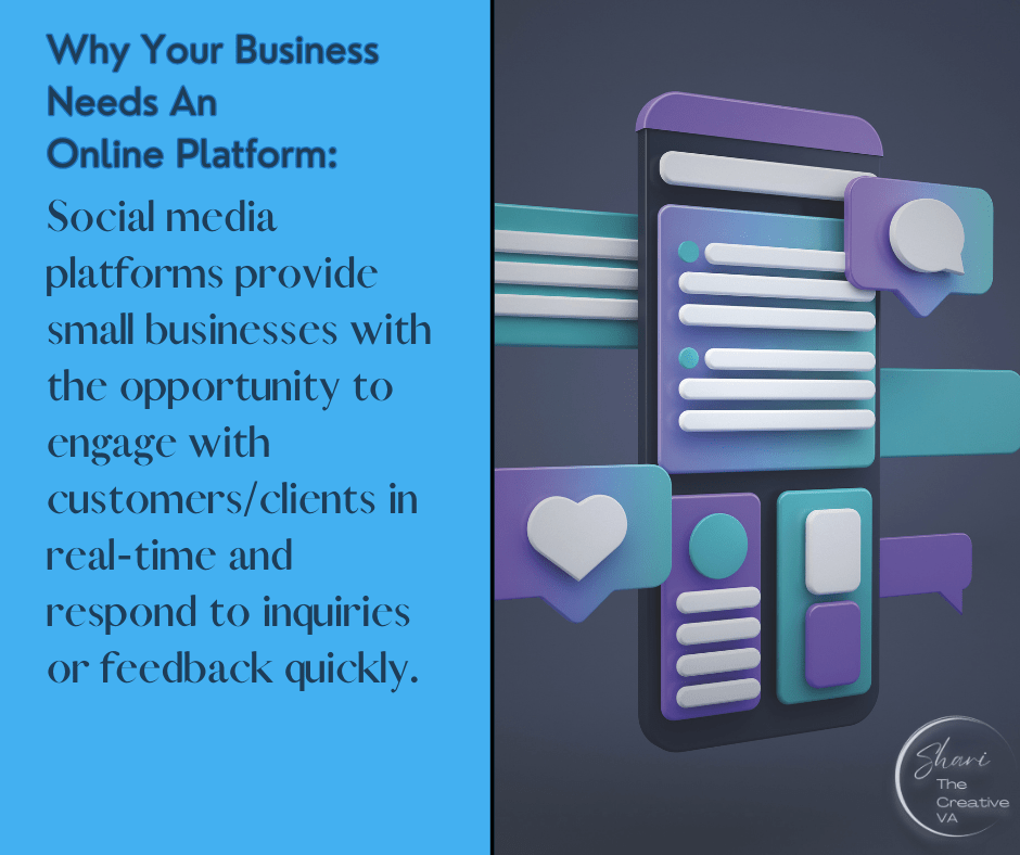 Social media platforms provide small businesses with the opportunity to engage with customers/clients in real-time and respond to inquiries or feedback quickly. By leveraging social media to provide exceptional customer service, your small business can create positive experiences and build loyalty. Whichever social media platform you choose, it can also be used to provide customers with valuable information and educational content related to the business, which can help to establish your business as a thought leader in the industry.